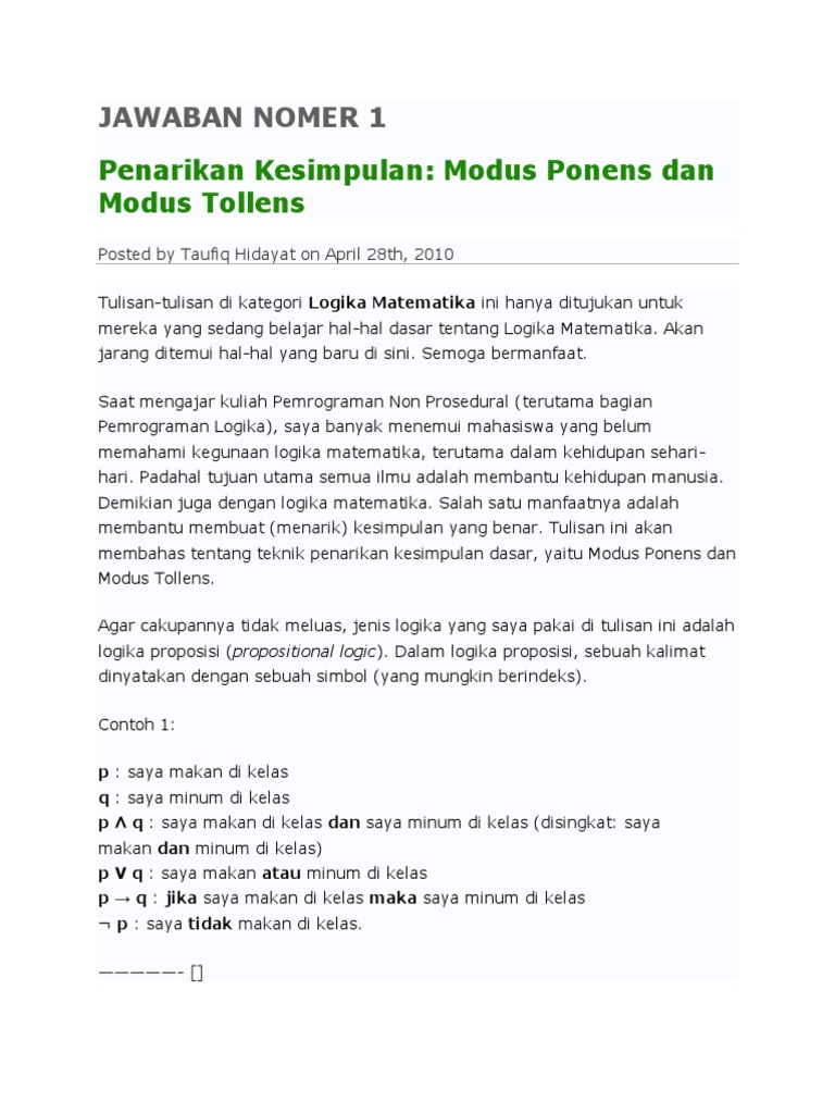 Contoh Penalaran Induktif Dalam Kehidupan Sehari Hari ... from s1.studylibid.com Contoh paragraf induktif tentang lingkungan bagi warga jakarta, membuang sampah seenaknya ke dalam sungai sudah jadi kebiasaan bahkan tradisi sejak dulu. Algoritma tidak hanya selalu identik dengan ilmu komputer atau matematik saja. Mengambil vitamin dan makanan bergizi, berolahraga di sore hari. Gaya yang kaki kita berikan kepada tanah ini merupakan gaya aksi. Penalaran induktif berarti memasukkan data ke otak dengan suatu hal yang umum ke khusus. Untuk turun ke lapangan dan melakukan penelitian tidak harus memliki konsep secara canggih tetapi cukup mengamati lapangan dan dari pengamatan lapangan tersebut dapat ditarik generalisasi dari suatu gejala. Contoh difusi dalam farmasi misalnya penghapusan obat dengan hemodialisis konvensional terjadi terutama oleh proses difusi obat melintasi membran dialisis dan paling efektif untuk obat yang kurang dari 500 da dan protein contoh difusi • proses difusi dan osmosis dalam kehidupan sehari hari. Budi pekerti adalah kelakuan baik yang didasari dengan moral, pemikiran, dan perbuatan baik.
